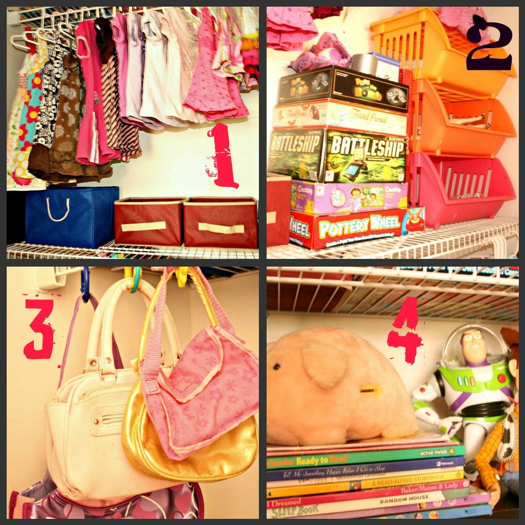 3. My daughter LOVES purses. So I used some linking rings to hang them from the wire shelf. They are low enough for her to reach and it keeps them off the floor.