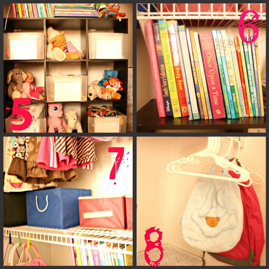 4. Books and toys were stacked neatly on the cubbies. And her piggy bank was placed out of reach of little sister. (since she likes to steal her money and put it in her mouth)